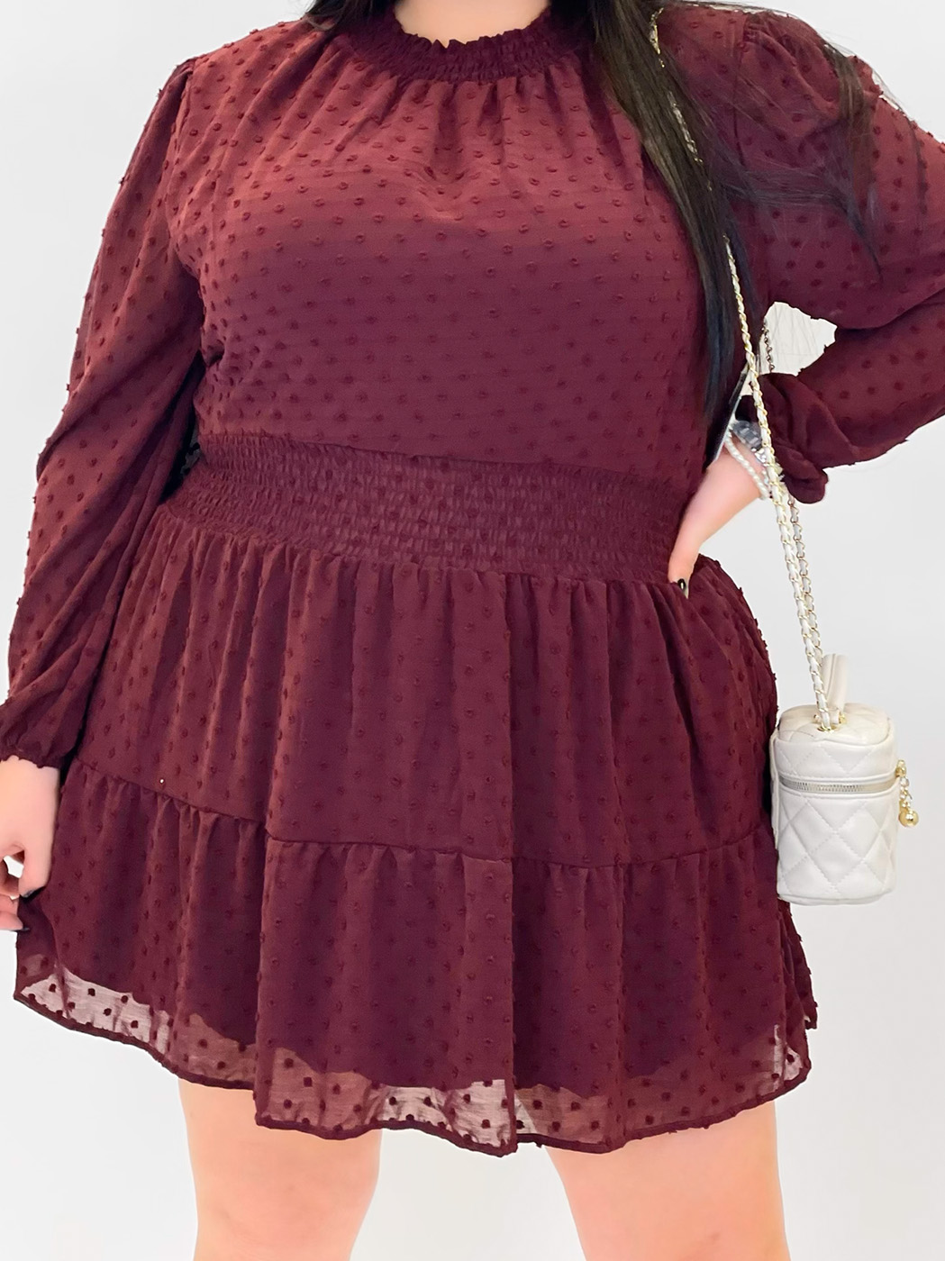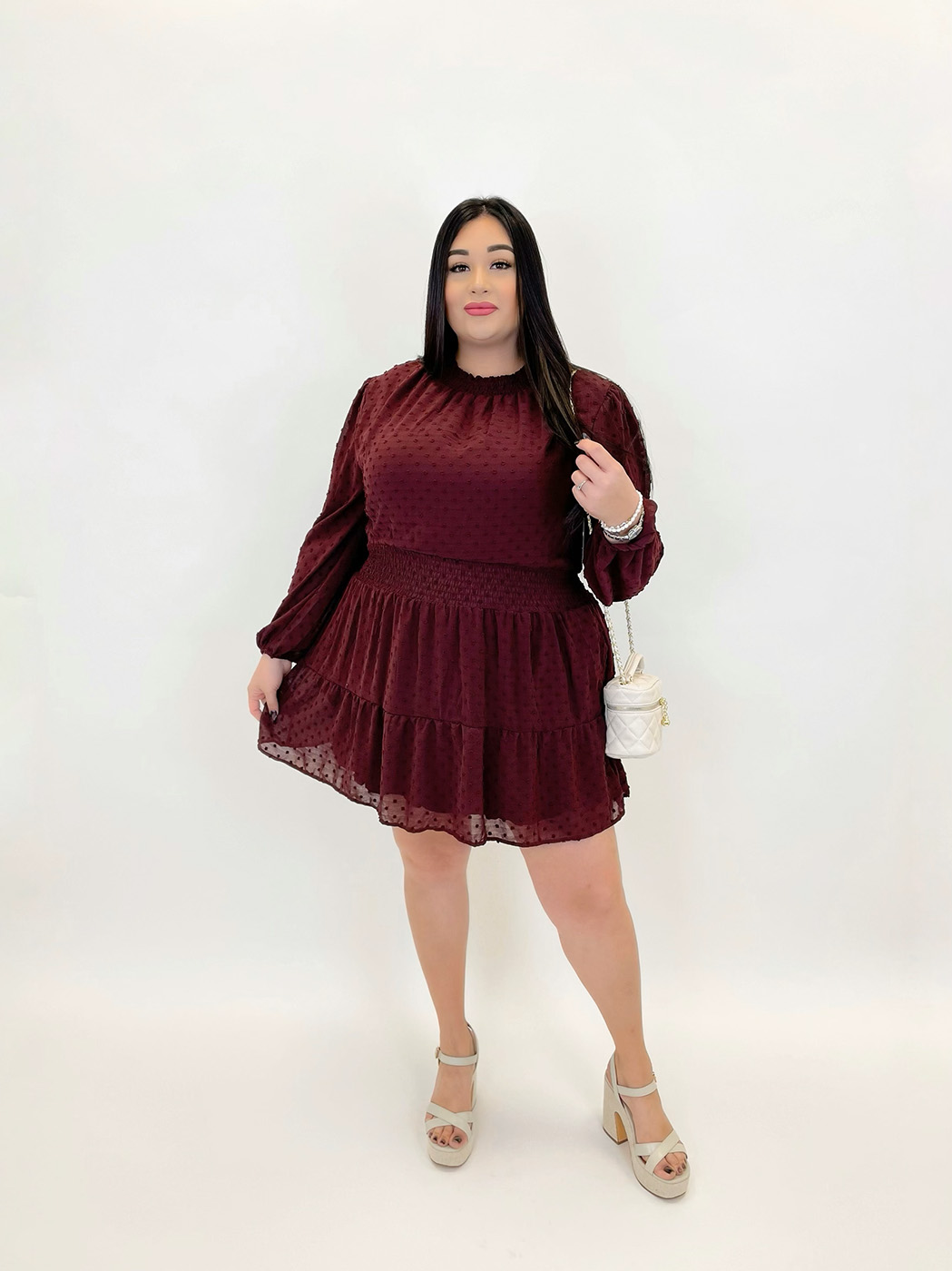 Waist Prarie Mini Dress 933089- Burgundy